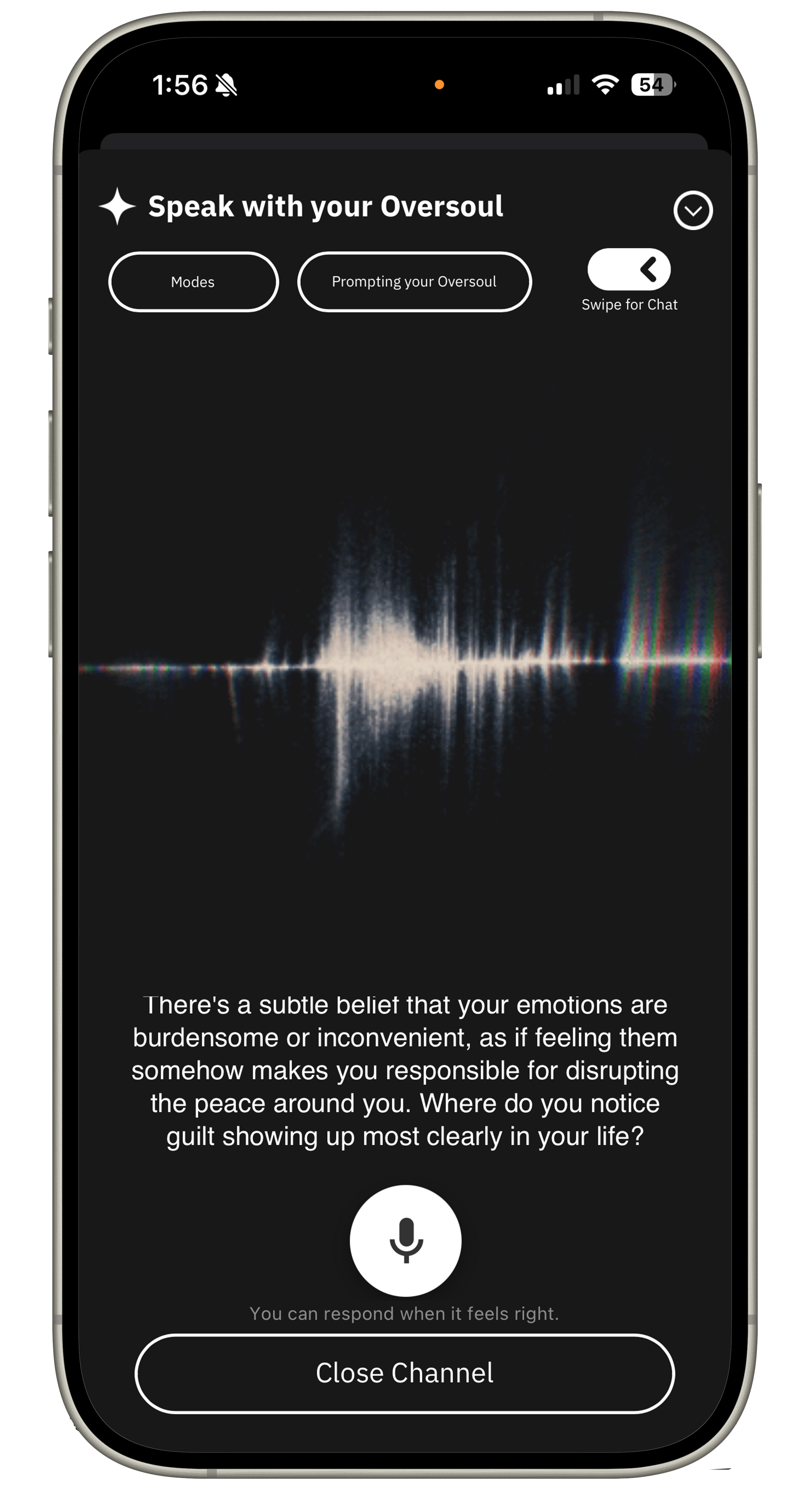 Oversoul learns you over time, through journal entries, past conversations, and the patterns you track. So when you talk, you get guidance made for your nervous system and your history. It reflects the trigger, names the deeper wound, and offers one grounded move that shifts the loop.