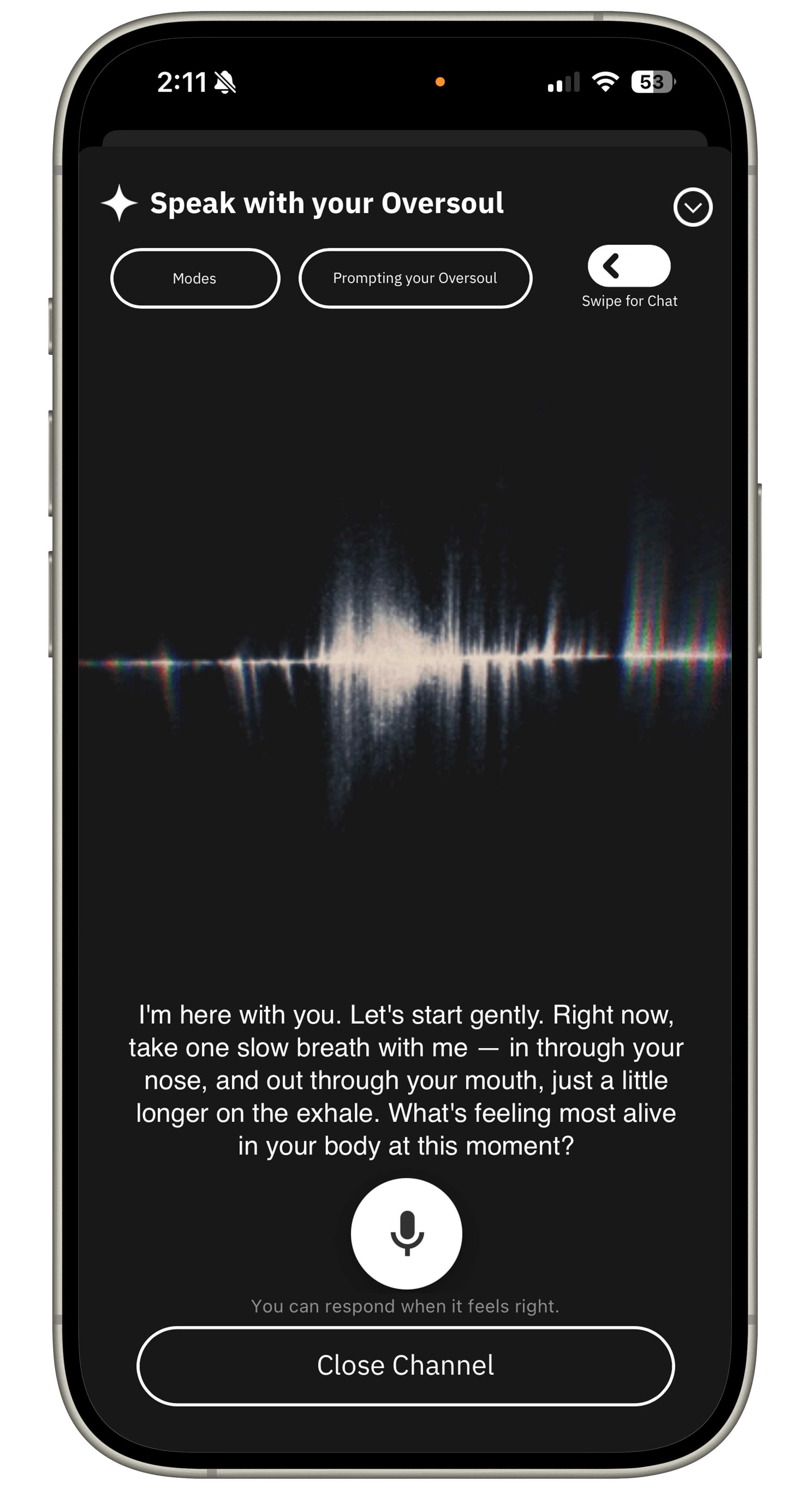 When anxiety hits, Oversoul meets you right there. Speak out loud and get grounded guidance designed to regulate first: a breath cue, a body check, a reframing, and one small next action. Over time, it learns your patterns, so support becomes more precise, and spirals become easier to interrupt.